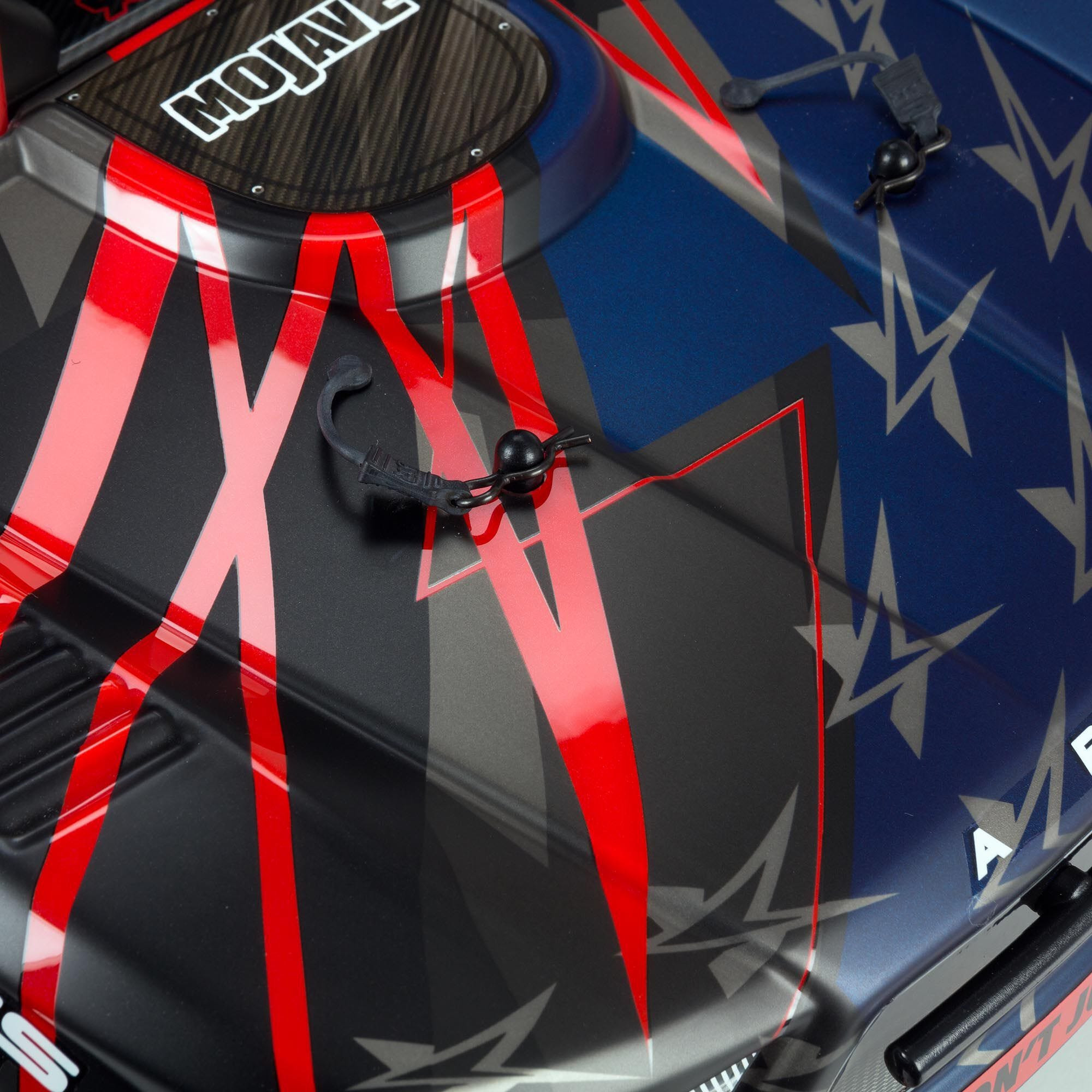 The 1/7 scale ARRMA® MOJAVE™ 6S BLX 4WD Desert Truck RTR is ready for big bashing action on any terrain. Its Spektrum™ SLT3™ 3-channel radio, dual protocol receiver, Smart ESC and more combine to reach new levels of speed, toughness and versatility.