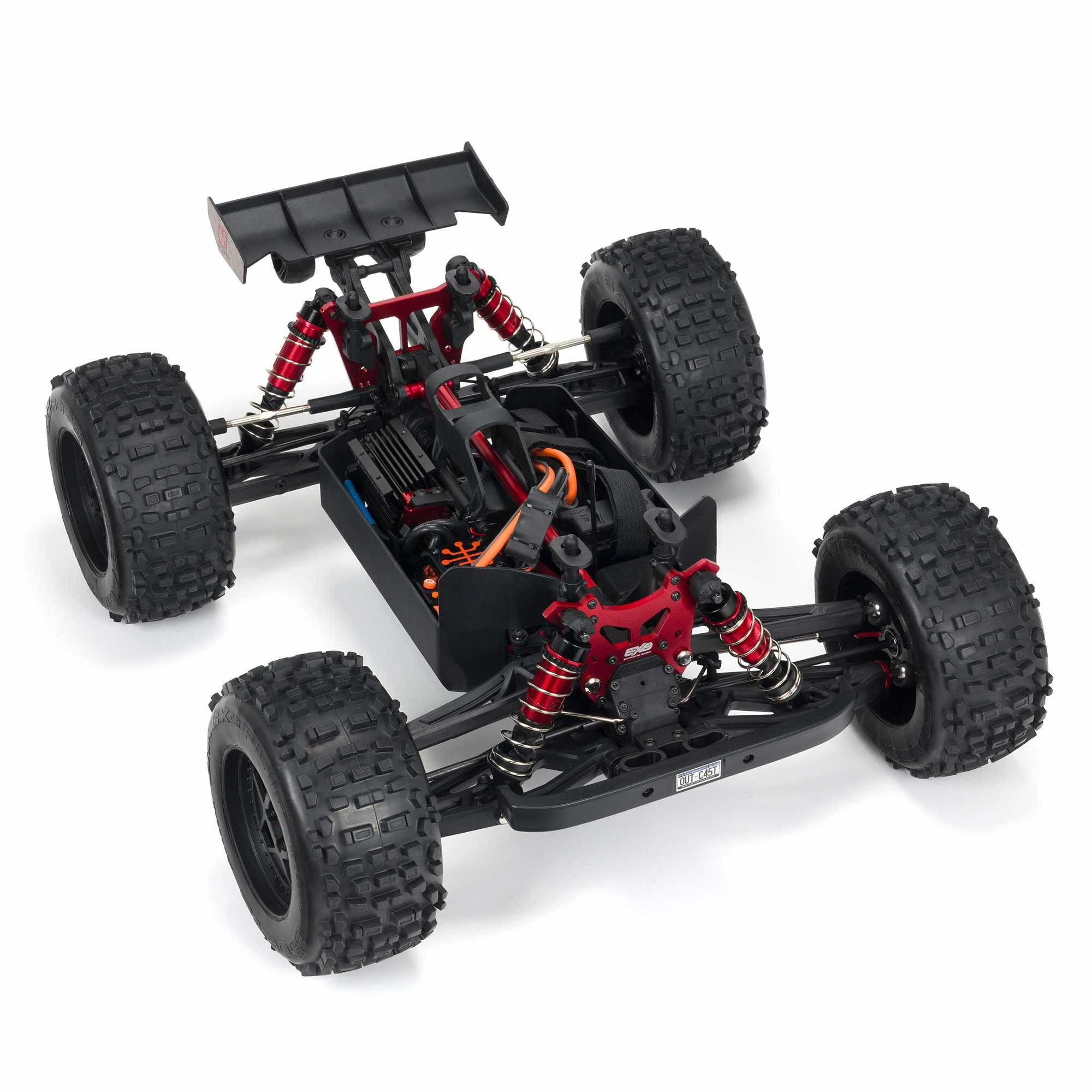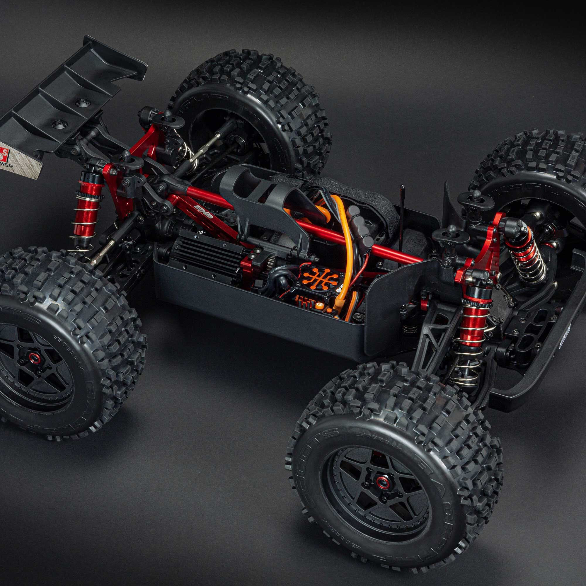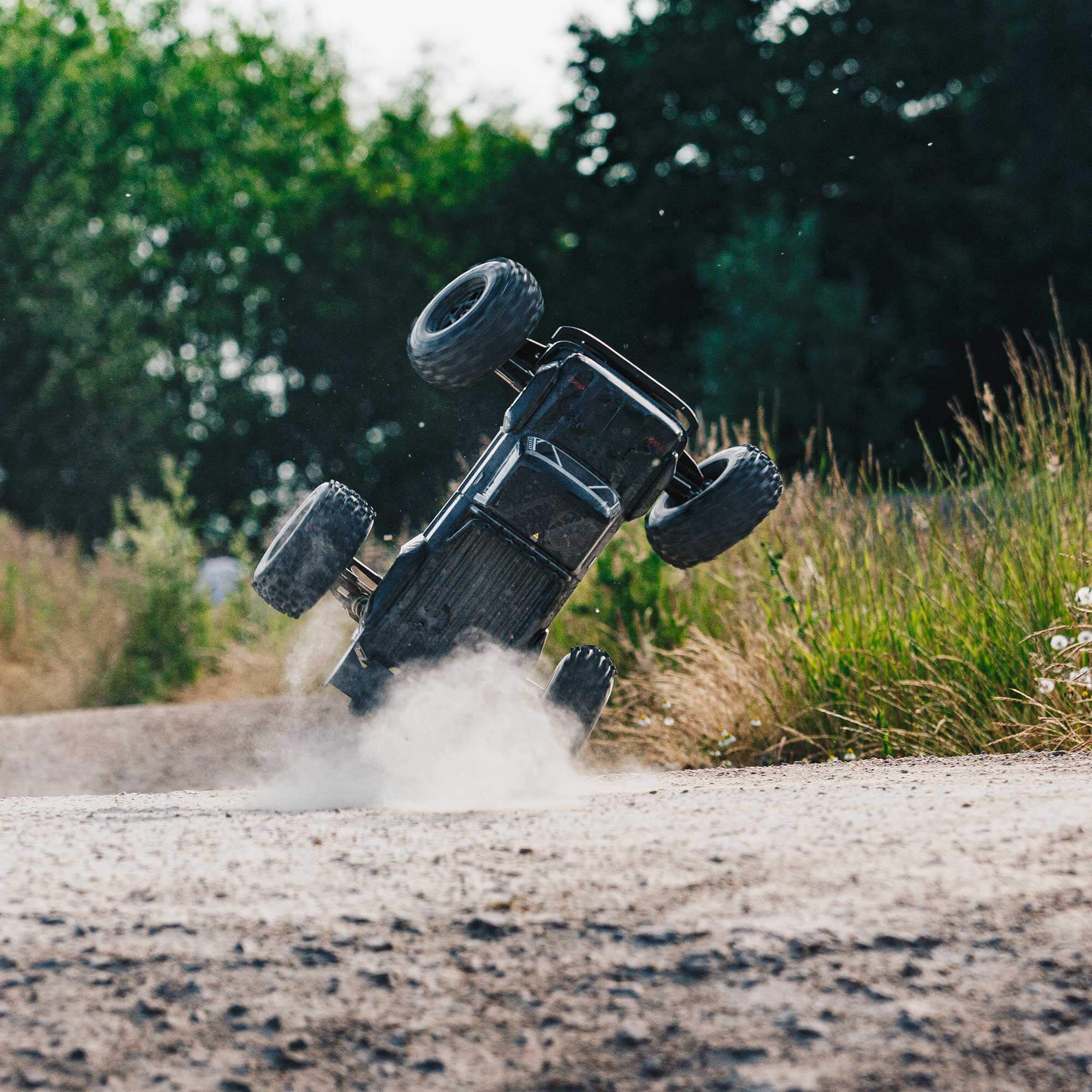 The ARRMA® OUTCAST™ 6S BLX Extreme Bash Stunt Truck is tougher than ever before, making it the ideal choice for taking your stunt bashing to the next level — with the added convenience of a fully installed, high-quality Spektrum™ electronics package.