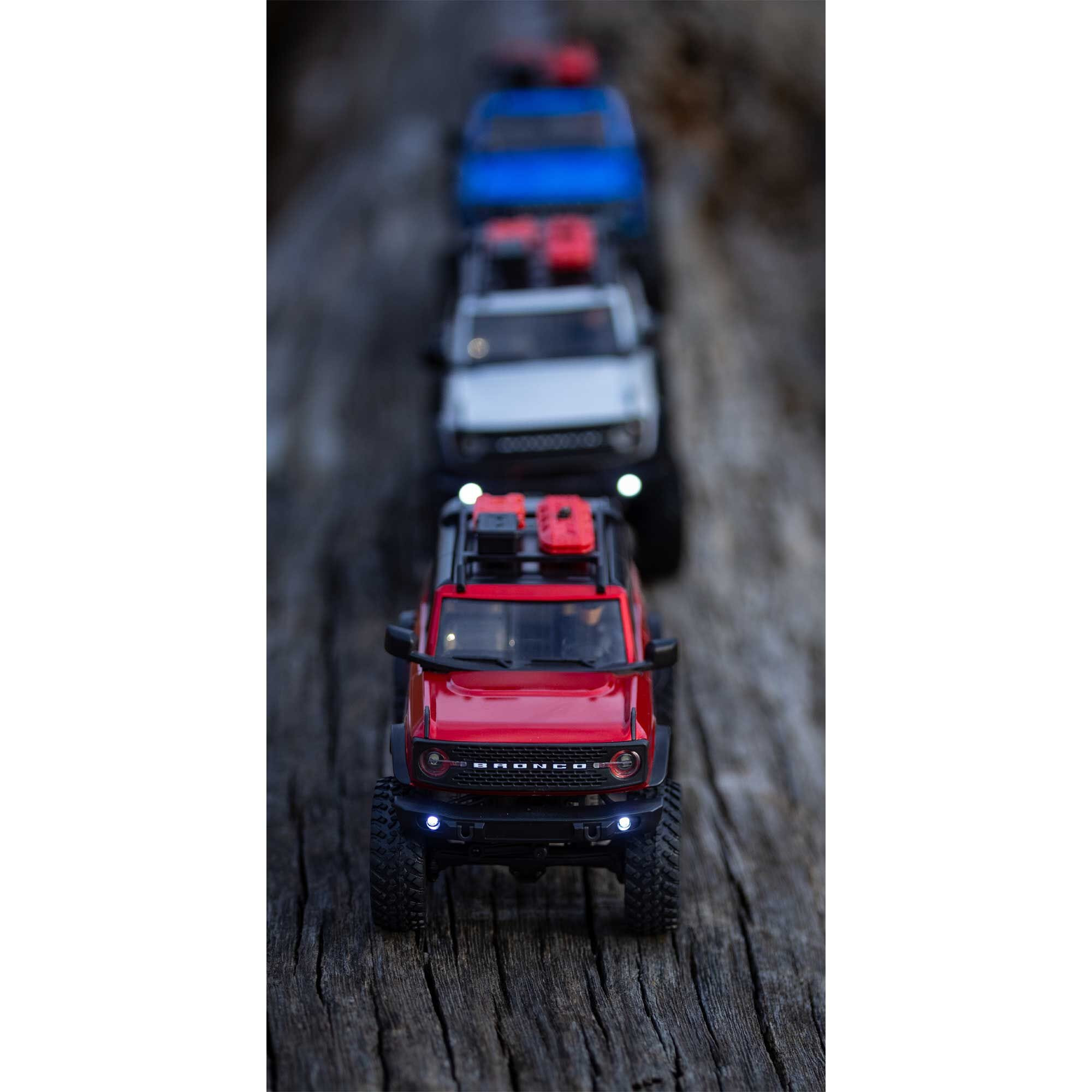 Axial® reaches a new peak in 1/24 scale realism with this officially licensed Ford Bronco 4WD that tops the proven SCX24™ platform with a highly detailed ABS hard body. Ideal for indoor or outdoor trails, it’s a must for Ford fans and RC enthusiasts of all ages!