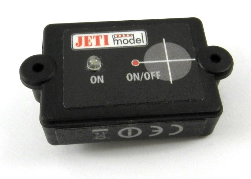 The Magnetic switch is an electronic switching device designed to be used as a switch for JETI model products. A big advantage of electronic switches in comparison to mechanical switches is that, in general, electronic switches are highly resistant to vibration. Also, virtually an unlimited number of ON and OFF cycles is guaranteed with an electronic switch. Because electronic switches have no mechanically movable elements, contacts etc. to wear out, an extremely long service life is another important feature. Unlike with mechanical switches, electronic switches cannot be unexpectedly or falsely tripped.