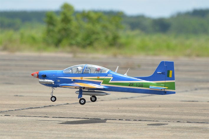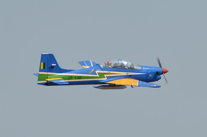 A great airplane! Its semi symmetrical airfoil and long tail moment deliver precise aerobatic performance for experienced pilots, yet the Tucano's superb stability and ultralight wing loading make it an ideal first low–wing model. This ARF has been designed to keep building time to a minimum; it's 90% pre-built, with premium covering. The better you get the more fun it gives you!