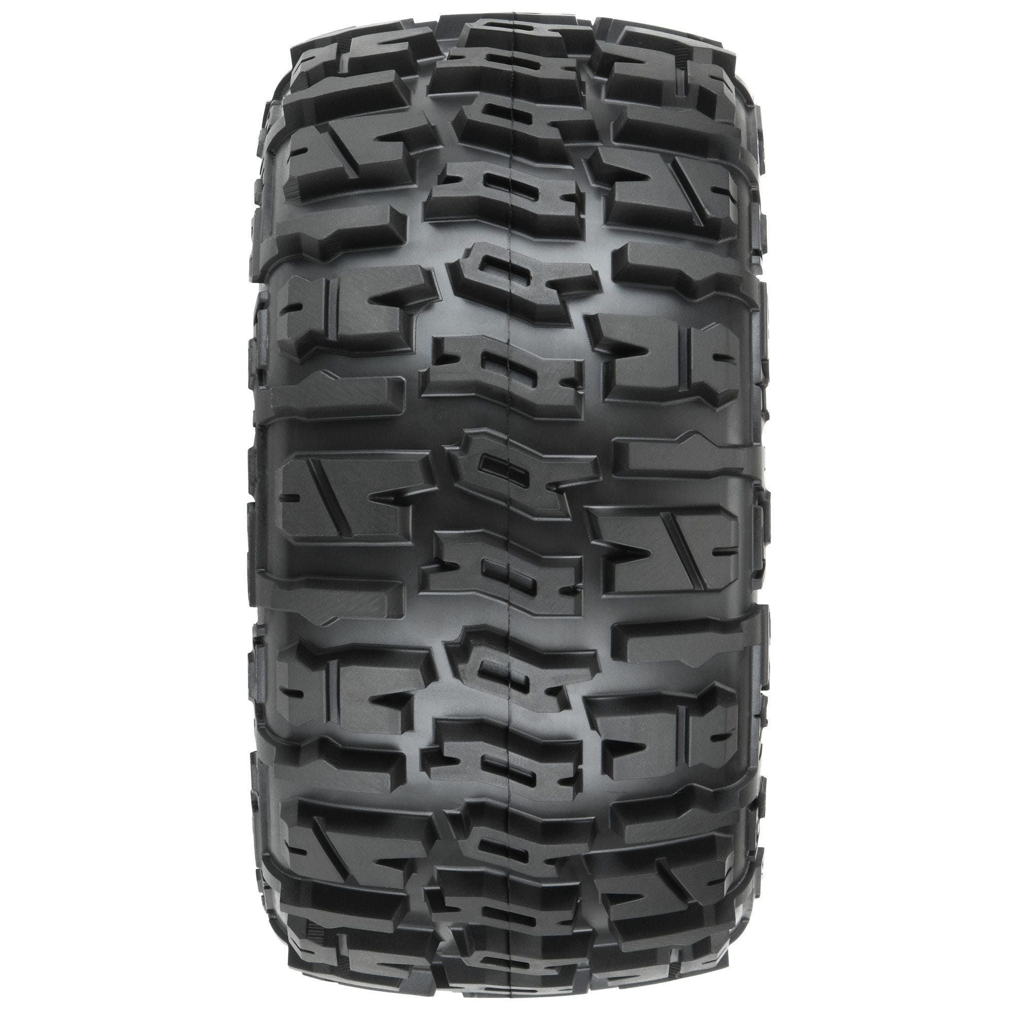 Pro-Line is stepping up the 3.8" tire game for Traxxas® MAXX® fans with the all-new Trencher LP 3.8" tires! The Trencher LP tires are designed to give your MT optimal traction on just about any surface and come in at 2.96" wide by 5.6" tall making it perfect for your MAXX® or Low Profile 1:8 Monster Truck build. Super cool horizontal H shaped treads give your MT ridiculous amounts of forward bite and with the super tall Trencher tread, you'll find that durability and longevity you have been searching for.