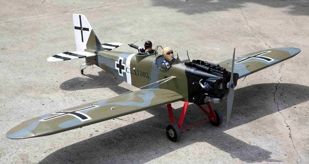 The Junkers CL.I was a ground-attack aircraft developed in Germany during World War I. The prototype flew in the late 1917 and was followed over the next few months by three more development aircraft. After the war, one or two CL.Is were converted for commercial service by enclosing the rear cockpit under a canopy. Seagull's Junkers CL1 G-BUYU 15cc with a wingspan of 1750mm is a new model released this year for anyone looking for a model that's out of the ordinary.