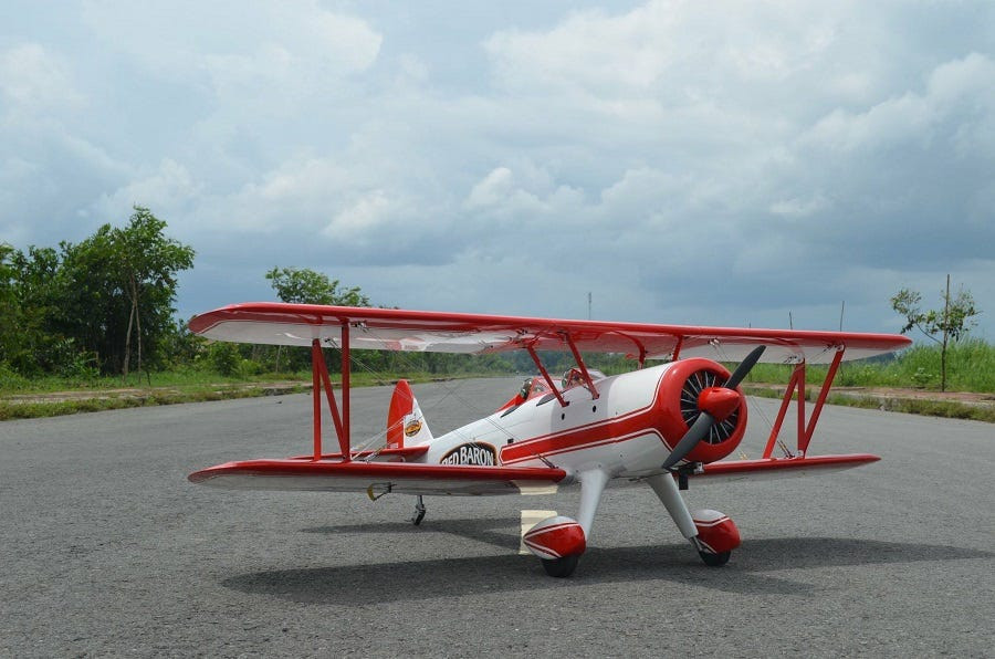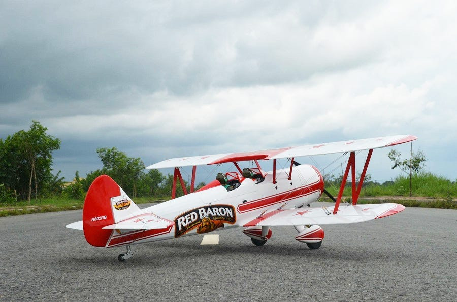 In terms of recognisable aircraft Boeings Stearman is up there with the Tiger Moth, the Piper Cub and the Cessna. Its an aviation classic yet ARTF scale models are remarkably few in number. All, then, will welcome Seagulls impressive 1/5-scale 71 span PT-17 Super Stearman decked out in the eye-catching colours of the Red Baron Squadron aerobatic team. Sporting all the twin wing struttery, flying wires and radial engine finery of the full-size, this is a model that, set against an azure sky, will fair knock yer socks off. What better introduction to scale model aeroplane ownership could you possibly want? With superb flying characteristics and no retracts to manage it certainly ticks a few boxes. Whats more, with Seagulls convenient wing storage system - top and bottom panels assembled and supported (off model) with transport frames - rigging it at the field takes no more than 10 minutes. Now that, as biplane owners will attest, is the difference between a regular flyer and a hangar queen. All it needs is a 120 four-stroke (20cc petrol), six Hitec servos, a good 5-channel (minimum) radio and a bit of tender loving ARTF assembly... What are you waiting for?